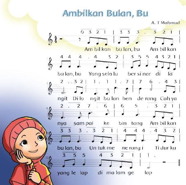 Lirik dan Not Lagu Ambilkan Bulan Bu (Ciptaan AT.Mahmud)
