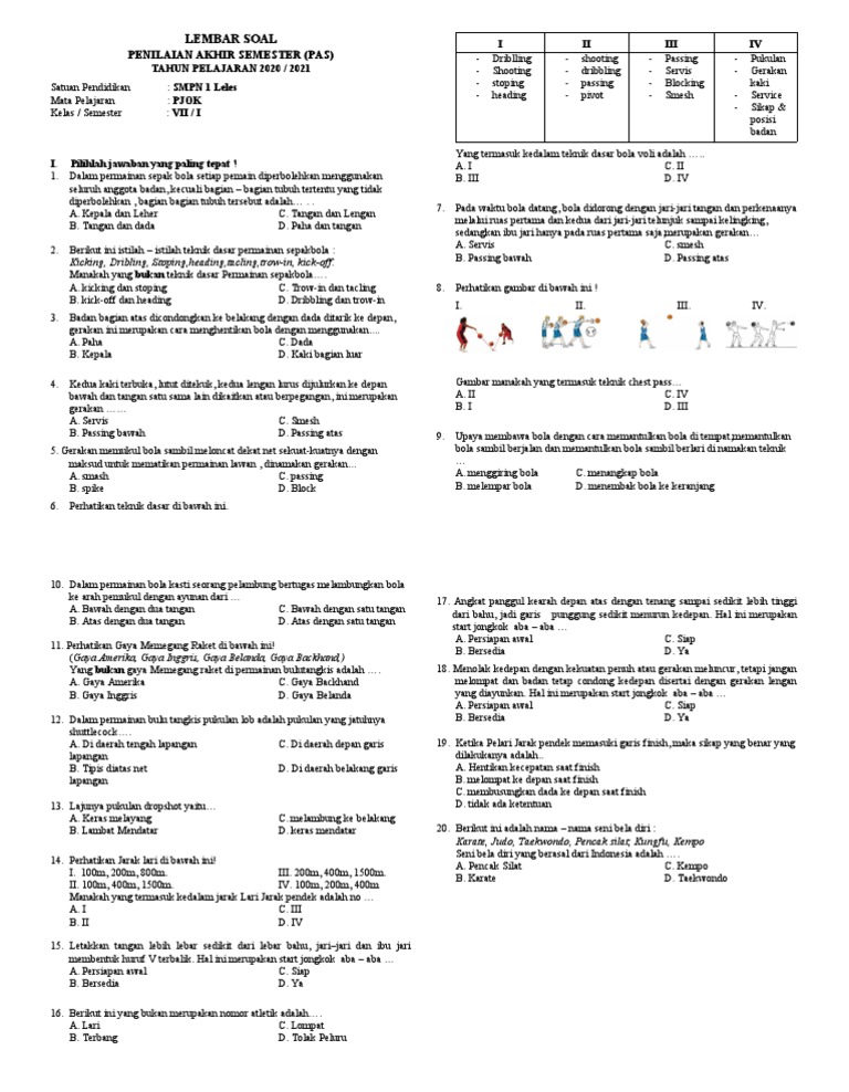 Lembar Soal Pas Pjok Kelas 7 | PDF